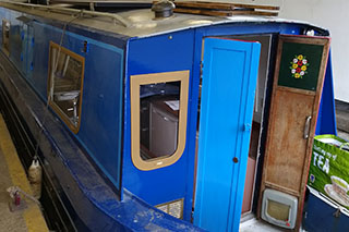 This project probably rates as the most interesting project to date. Unfortunately the boat had suffered severe water ingress and had actually sunk. Most likely the sinking was caused by a failed gas locker wall coupled with changes in water levels. So locker repairs were completed. Internally we had to do a complete strip out and 2 skips were needed to put all the waste in. All the ballast was lifted and much work was done on internal steel surfaces to clean, repair and protect before spray foam could be applied. Then it was a ground up fit out. This was to turn the boat into a proper catering facility and to extend trading as 'The Curry Cruiser'. This required ensuring the kitchen would pass food standards requirements - and in due course it got top rating. The facilities now allow the owners to cook from scratch on the boat and to serve customers and also stay aboard. We all highly recommend the food - its delicious!