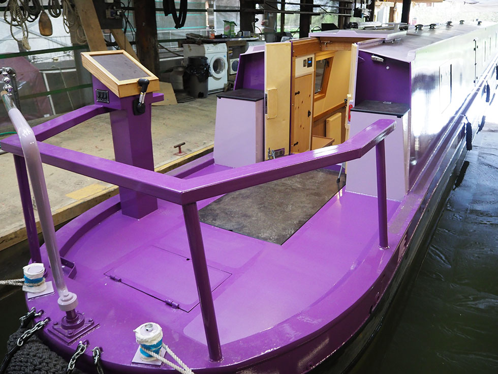 Gypsy Witch was bought to us by the owner as a sail away with windows, in primer with many problems of poor fabrication. We stripped and repainted and did a complete fit out for the owner to her design. Corian used for work surface, shower tray and panels and vanity unit top. Hurricane diesel providing heating and hot water, travel pack for 230V direct from the engine, flexible solar panels.